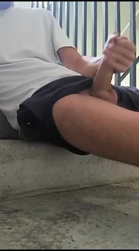 Love the video on the steps nice cock and balls I want to suck it